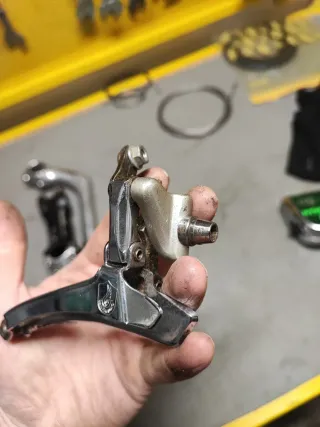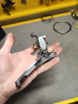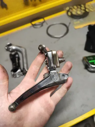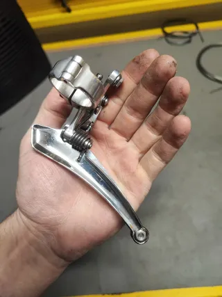 Deragliatore anteriore Campagnolo in metallo cromato. Come nuovo