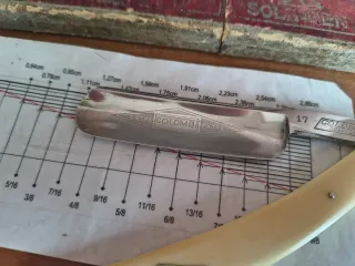 Rasoio mano libera colombi con manico e scatolino originale Bisogna togliere qualche chip sul filo,6/8 pieni Per qualsiasi info sono a disposizione Rasoio barbiere rasatura tradizionale antico