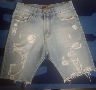 Shorts in denim con un look grintoso e alla moda. - Design strappato e sfilacciato. - Vita media. - Tasche anteriori e posteriori.... Misure indicate in foto.