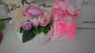 Deliziosa decorazione a forma di sfera con fiori artificiali e un fiocco di raso rosa. - Fiori in tonalità pastello. - Fiocco in raso lucido. - Base bianca.