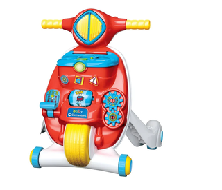 Gioco 2 in 1: un grintoso primi passi a forma di scooter che è anche un centro attività per imparare lettere e numeri in italiano e in inglese Il cestino frontale dello scooter è un incastraforme non elettronico dove inserire le 3 formine incluse nel gioco Sviluppa la motricità, il linguaggio e l'immaginazione Stimola la percezione visiva e uditiva grazie ai 4 tasti interattivi (il clacson, il rullo, la pagina del libro e le ruote) e alla luce sotto al fanalino Bilingue italiano/inglese Con tanti suoni e allegre musichette Funziona con 2 pile AA/LR6