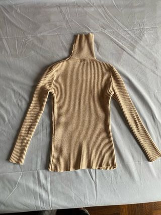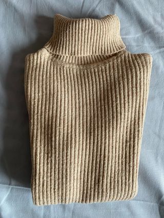 Maglione a collo alto in maglia a coste. - Maniche lunghe. - Collo alto. - Tessuto a coste. Caldo ed indispensabile per la stagione invernale. Versatile come capo basic nel tuo armadio sia per un outfit formale e da ufficio, che per un abbigliamento casual. Perfetto per uno stile old money, preppy, college / varsity, lady, parisian chic, ystyle, coquette, soft girl, minimal o smart casual. • Taglia: S, ma veste un po' piccolo • Vestibilità: aderente ma comoda, molto elasticızzato • Condizioni: ottime • Tessuto: morbido e caldo, ideale per autunno-inverno • Colore: sabbia • Perfetto per: università, gonne e pantaloni a vita alta