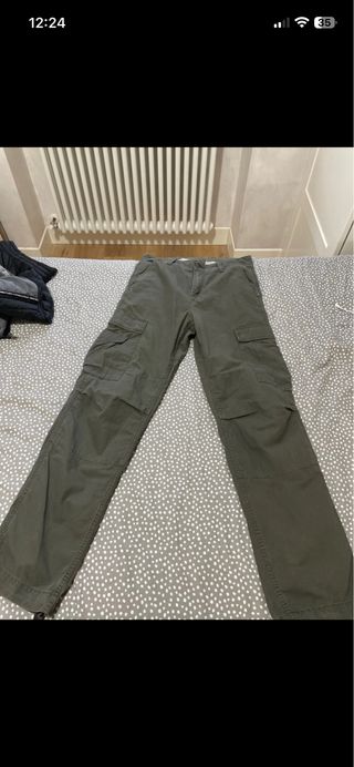Pantaloni cargo dal taglio moderno. - Tasche laterali applicate. - Chiusura con zip e bottone. - Coulisse alle caviglie.