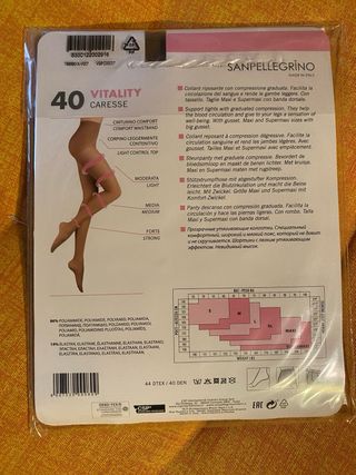 Collant Sanpellegrino VITALITY CARESSE 40, color beige. - Taglia 6XL / 52 / 24. - Media compressione graduata. - Made in Italy. VITALITY CARESSE 40 den Collant riposante con compressione graduata da moderata a forte. Facilita la circolazione del sangue e rende le gambe leggere. Indispensabili per le lunghe giornate lavorative. CINTURINO COMFORT CORPINO LEGGERMENTE CONTENITIVO Una carezza per le tue gambe! #collant #collants #calze #collantfemme #collantriposanti