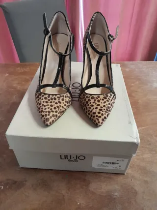 Eleganti scarpe con tacco Liu Jo, perfette per aggiungere un tocco di stile. Con scatola originale. - Fantasia leopardata. - Dettagli in vernice nera. - Cinturino alla caviglia.