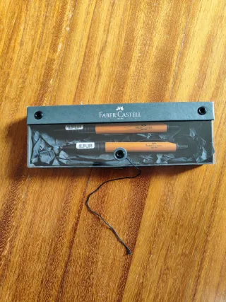 Elegante set Faber Castell con penna a sfera e matita. - Penna a sfera e matita in confezione. - Design classico Faber Castell. Corpo in metallo con finitura in legno. Il buon bilanciamento le rendono comode per scrivere e disegnare a lungo. Refill di lunga durata colore nero. Mai utilizzate. Anno acquisto 2001. Per collezionisti.