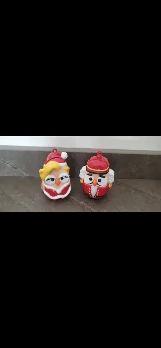 Set di due decorazioni natalizie Egan. - Un gufetto a tema Marilyn Monroe. - Un gufetto a tema soldatino schiaccianoci.