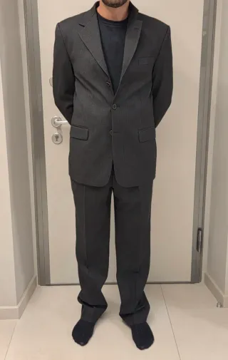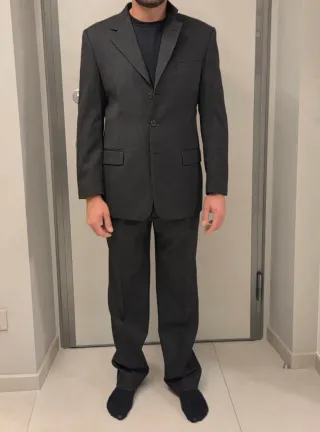 Completo giacca e pantalone in tessuto. Giacca monopetto a tre bottoni. Usato pochissimo. Taglia italiana 50.