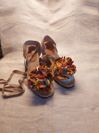 Sandali donna tipo espadrilla colore corda con zeppa e particolari in pelle