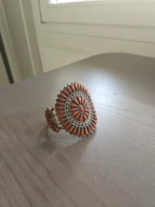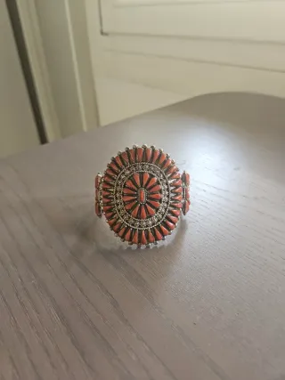 Bracciale bangle vintage in argento sterling 925 con corallo. Realizzato dall'orafo Zuni nativo indigeno americano Bernal Natewa. Stile Zuni, nativo, indigeni, hippie, boho, whimsical. Peso 62 grammi. DISPONIBILE ANCHE IL RITIRO A MANO DI PERSONA IN ZONA VICENZA 💓