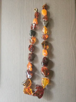 Bellissima collana vintage artigianale realizzata con pezzi grezzi di forma freeform di ambra baltica. Ogni pietra presenta sfumature uniche che vanno dal miele chiaro, all'arancio, al marrone intenso. Chiusura in oro 18k carati. Marca Lineafur, attualmente Lineagem. Costo nuova €890. DISPONIBILE ANCHE IL RITIRO A MANO DI PERSONA IN ZONA VICENZA 💓