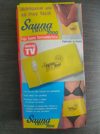 Fascia termoelettrica Sauna Tronic 2000 per il benessere, mai utilizzata e ancora nella sua confezione originale con istruzioni in Italiano. Si tratta di una perfetta e comoda sauna portatile, ideale per essere applicata sull'addome, vita, fianchi e schiena. Agevola l'eliminazione di tossine e grassi mediante sudorazione.