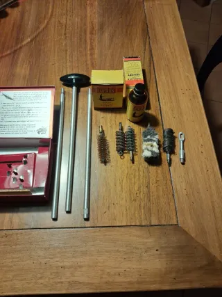Kit di pulizia per armi da fuoco Outers Gunslick. - Include bacchette, scovoli, pezzuole e solvente. - Prodotto da Outers Laboratories, Inc. Osaleske, Wis.