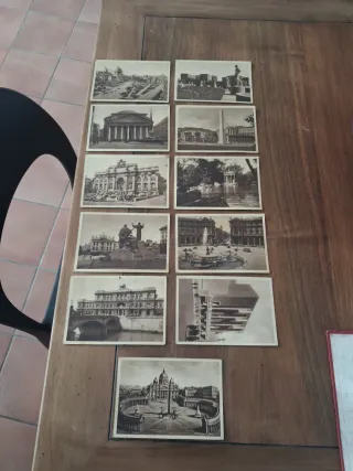 Set di 11 cartoline d'epoca raffiguranti la città di Roma nel 1934. - Vedute di monumenti e piazze. - Stampe in bianco e nero. - Edizione originale del 1934.