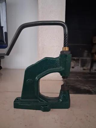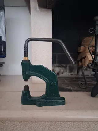 Occhiellatrice robusta in ghisa, ideale per lavori di precisione. Compresa di occhielli. Mai usata. - Materiale: ghisa resistente. - Colore: verde scuro.