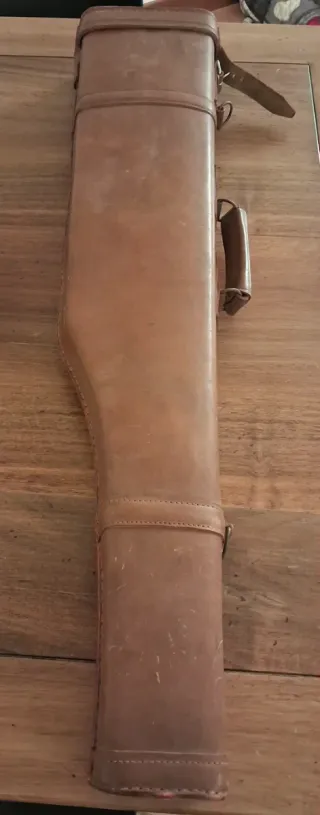 Elegante portafucili in cuoio, perfetto per conservare e trasportare il tuo fucile. - Materiale: cuoio di alta qualità. - Design classico e funzionale. - Manico per un facile trasporto.