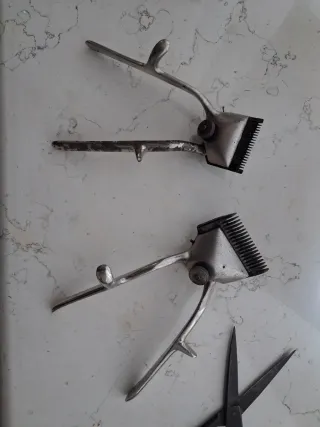 Set di due tagliacapelli manuali da barbiere, con rasoio ,risalenti agli anni '40. Oggetti da collezione. - Materiale metallico. - Design vintage.