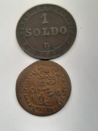 Lotto composto da due monete.Un soldo dello Stato Pontificio papa Pio IX 1867, e un centesimo del Regno Lombardo-Veneto 1822 Imperatore Giuseppe I D'Asburgo - Una moneta da 1 Soldo. - Una moneta da 1 Centesimo.