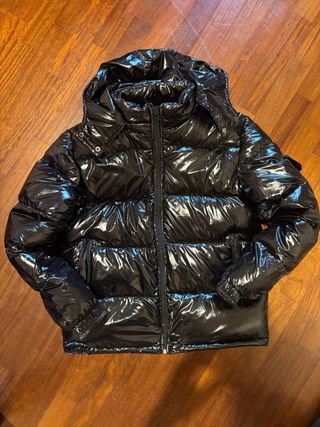 Elegante giubbotto nero lucido, perfetto per le giornate più fredde. - Cappuccio integrato. - Chiusura con zip frontale. - Tasche laterali. - Polsini elasticizzati.