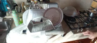 Affettatrice usata solo due volte, praticamente come nuova. - Lama in acciaio inossidabile. - Base antiscivolo per maggiore stabilità. - Design compatto e facile da riporre.