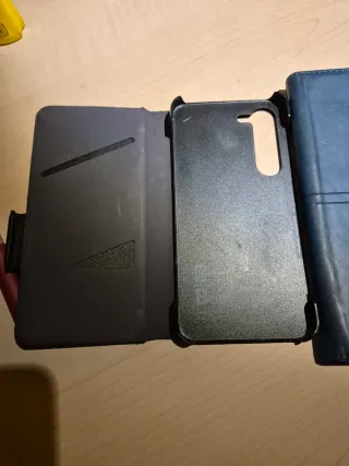 Cover per smartphone Samsung. - Colore blu. - Design a libro. - Materiale in similpelle.