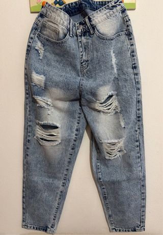 Jeans da uomo con un look moderno e grintoso. - Effetto stone washed per un look vissuto. - Dettagli strappati su tutta la gamba. - Vestibilità comoda, mai indossato e completamente nuovo.