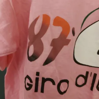 Maglietta rosa con grafica celebrativa dell'87° Giro d'Italia. - Design con numero 87 e logo. - Scritta Giro d'Italia sul davanti.