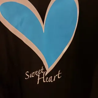 T-shirt nera con stampa Sweet Heart e cuore azzurro. - Stampa Sweet Heart con cuore azzurro e contorno bianco. - Taglia L.