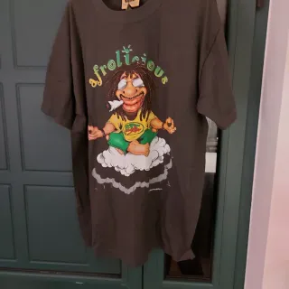 Maglietta con stampa grafica Afrolicious raffigurante un personaggio rasta in meditazione su una nuvola. - Stampa colorata e dettagliata. - Design unico e originale.