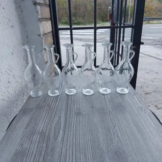 Set di sei bottigliette in vetro da 25 cl ciascuna. Ideali per contenere liquidi o come elementi decorativi. - Capacità: 25 cl - Materiale: Vetro