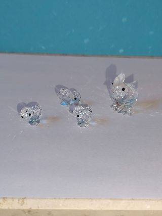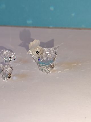 Set di 4statuette Swarovski: 1gallina con 3 pulcini. senza scatole.