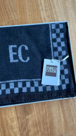 Elegante sciarpa da uomo Enrico Coveri, perfetta per completare il tuo look. -Con Cartellino - Design con iniziali EC ricamate. - Motivo a scacchiera sui bordi. - Frange decorative.