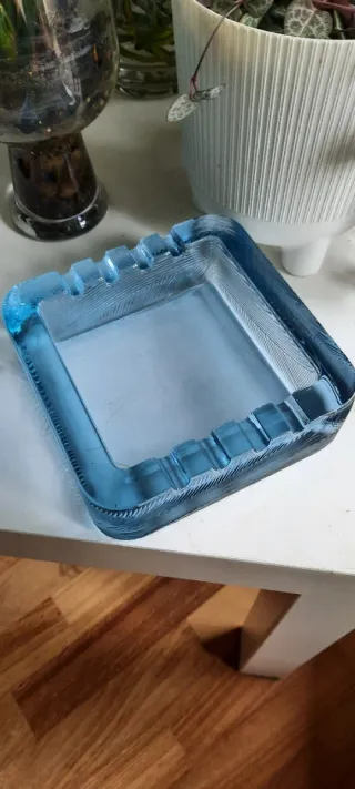 Splendido posacenere o svuotatasche di design italiano, risalente agli Anni '60/'70. Un pezzo di grande impatto visivo per la sua massa e il vibrante colore blu cobalto/turchese. Lo stile, la lavorazione del cristallo pesante e la qualità sono fortemente attribuibili ad Arnolfo di Cambio, la celebre manifattura di Colle Val d'Elsa (Firenze), nota per la collaborazione con designer di fama (es. Joe Colombo). Importante: Non presenta la firma incisa sulla base, ma è venduto con forte attribuzione stilistica a metà prezzo del suo valore reale. Dimensioni 14 cm Altezza 5cm Peso 1,65 kg #posacenere #DesignItaliano