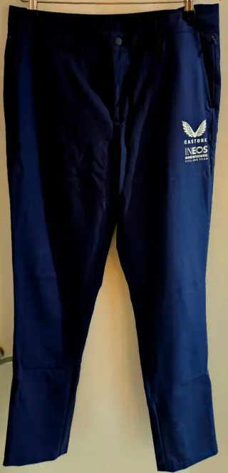 Pantaloncino sportivo blu navy del marchio Castore, appartenente alla squadra Ineos Grenadiers Cycling Team. Logo di Castore e Ineos Grenadiers Cycling Team in bianco. Chiusura con bottone e cerniera. Tasche laterali con cerniera. Taglia S ma come una M.
