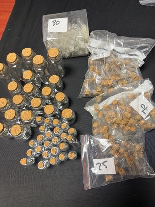 Ideali per lavori manuali, souvenir o piccoli dettagli. Materiale: vetro e sughero naturale.