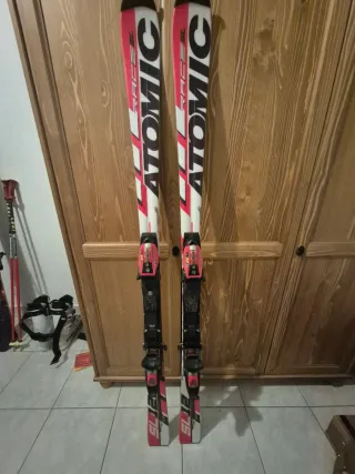 Sci Atomic Race SL12, ideali per chi ama la velocità e le curve strette. - Design sportivo con inserti rossi e neri. - Attacchi Atomic inclusi.