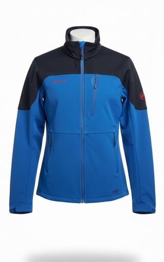 Giacca Mammut Ultimate Windstopper in buone condizioni, taglia M. Perfetta per le attività all'aperto. - Colore blu e nero. - Logo Mammut rosso sul petto. - Logo Mammut con elefante rosso sulla manica. - Zip frontale e tasche con zip. - presenta segni di utilizzo