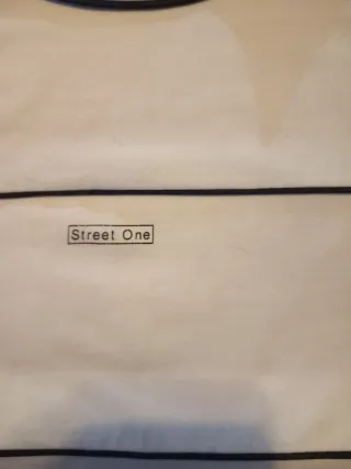 Maglietta a maniche lunghe, colore bianco. TG. 42 - Girocollo con bordo nero - Due strisce orizzontali nero sul petto. - Logo Street One sul petto.
