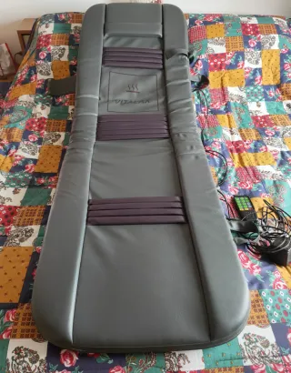 Materassino massaggiante e riscaldante di marca VITALAX, ideale per il relax. Funzioni principali: Offre massaggi vibranti e dispone di una funzione di riscaldamento. Zone di applicazione: Offre un massaggio vibrante su diverse zone del corpo come collo, schiena, zona lombare e gambe. È dotato di una funzione di riscaldamento per alleviare le tensioni muscolari. Include un telecomando per regolare l'intensità e le modalità di massaggio. Benefici: Aiuta a rilassare i muscoli, alleviare la fatica e stimolare la circolazione sanguigna. - Colore grigio. - Logo VITALAX stampato. - Inserti in tessuto viola. - Telecomando incluso.