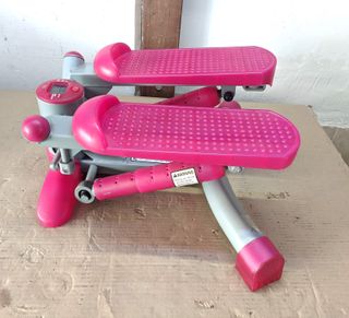 Stepper Idraulico DOMYOS ST270 Rosa Grigio Max 100 kg, 220 Ibs Display step Twist stepper di DOMYOS nei colori grigio e rosa. Mostra calorie, scansione, tempo, passi/min e conteggio dei passi sul display. La superficie rosa è antiscivolo, gli elementi grigi sono in metallo. Carico massimo 220 libbre, 100 kg Attrezzo fitness con gradini antiscivolo Contatore a 4 funzioni: ripetizioni, durata, frequenza e calorie bruciate Permette di lavorare sull'allenamento cardio e sul rafforzamento muscolare In ottime condizioni Perfetto per chi vuole prendersi cura del proprio fisico senza uscire di casa. Peso 6 kg. Lunghezza: 47 cm. Lar