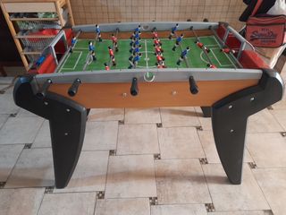 Vendo questo calciobalilla in legno, in buone condizioni. È un gioco divertente per tutta la famiglia! - Struttura in legno e plastica. -Struttura resistente. - Perfetto per serate in compagnia. Attenzione: la porta dei gialli è staccata da una parte come in foto n.6.