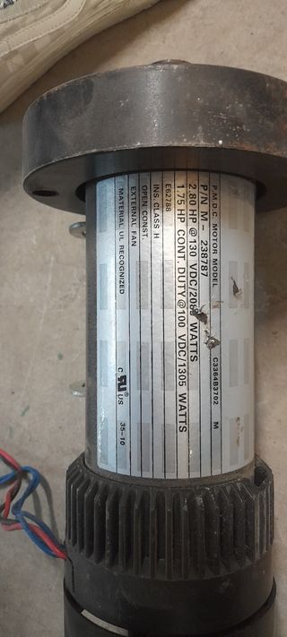 Motore P.M.D.C. con potenza di 2.80 HP a 130 VDC. - Modello: 238787 - Potenza continua: 1.75 HP a 100 VDC / 1305 Watts - Classe di isolamento: H - base dappoggio regolabile - Ventola esterna - Materiale riconosciuto UL Motore tapirulan