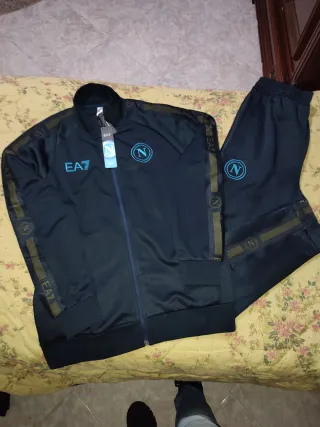 Completo tuta sportiva EA7 per uomo, colore blu. - Logo EA7 sul petto. - Strisce laterali con logo EA7 e disegno N. - Zip frontale. Taglia L