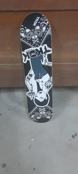 Tavola da skateboard con grafica. - Design con bandana e teschi. - Grafica centrale con figura stilizzata.