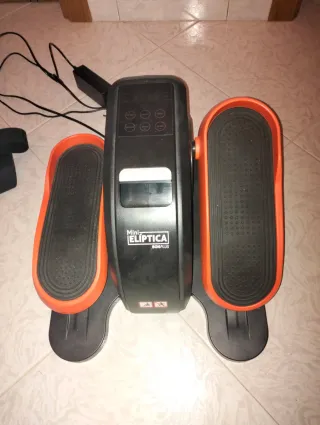 Mini Ellittica Elettrica Bonplus BP, un attrezzo compatto per l'esercizio passivo e la riabilitazione. È progettata per mantenere le gambe in movimento anche da seduti, migliorando la circolazione e riducendo il gonfiore. L'attrezzo è bidirezionale, consentendo il movimento in avanti e indietro, ed è dotato di 3 modalità di velocità. Include un display LCD che mostra tempo, distanza, calorie bruciate e velocità. Viene fornito con un telecomando per cambiare le impostazioni senza doversi chinare. L'uso è silenzioso e a basso impatto, ideale per l'uso domestico o in ufficio.