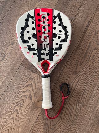 Ottime condizioni. In alcuni punti è saltata la vernice come da foto. Racchetta da padel Babolat Lebron Veron, modello 2025. Design moderno e accattivante. - Colore bianco, rosso e nero. - Logo Babolat ben visibile. - Cordino di sicurezza rosso. - Impugnatura bianca.