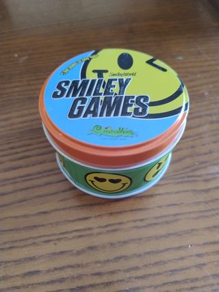 Vendo il gioco da tavolo Smiley Games. È in ottime condizioni ed è perfetto per serate divertenti in compagnia. - Include 1 contenitore di latta e 2 dadi e le carte - Ideale per 2 o più giocatori. - Gioco semplice e divertente per tutte le età.