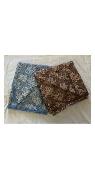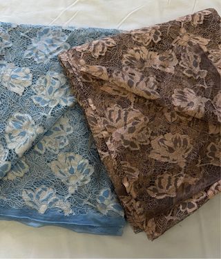 Lotto di 2 Scampoli Tessuto di Pizzo con Motivi Floreali Lavorazione Tipo Macramè/ Rebrodè su Base Micro Rete Semielastica Colori Celeste Polvere e Colore Castagna Cioccolato al Latte Morbido e Cadente e Piacevole al Tatto Lunghezza Color Castagna 2 Metri e 50 cm Altezza 1 Metro e 26 cm Altezza Utile 1 Metro e 22 cm Come si Vede dalle Foto questo Tessuto sul Fondo del Taglio é più Grande che non Rovina Affatto il Taglio e la Fantasia Lunghezza Color Celeste Polvere 1 Metro e 15 cm Altezza 1 Metro e 46 cm Altezza Utile 1 Metro e 40 cm 98% Poliammide 2% Elastan Nuovo mai Utilizzato #tessutopizzo #pizzo #pizzofloreale #pizzomacramè