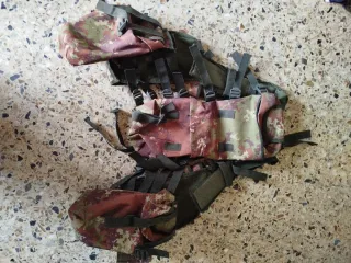 Gilet tattico con mimetismo vegetato, ideale per softair o attività all'aperto. - Molte tasche di grandezza diversa - Fibbie sulla schiena per attaccare ad esempio tende e teli - Tasca per sacca idratazione - Completamente regolabile Condizioni pari al nuovo