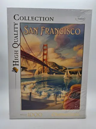 Puzzle Clementoni San Francisco da 1000 pezzi. Raffigura un paesaggio iconico con il Golden Gate Bridge e barche a vela. - Serie Collection. - Tema Fantasy. - 1000 pezzi.